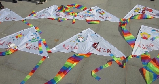 在孩子們一雙雙小手的努力下,美麗的色彩在風箏上一點一滴蔓延開來。有聰明的哆啦A夢,可愛的懶羊羊,神氣的豬豬俠,淘氣的維尼小熊,美麗的Hello Kitty,每個卡通人物都活靈活現的躍然于風箏上鮮艷的顏色,有趣的圖案,再配上孩子們可愛的笑臉,讓在場所有人的心都溫暖起來。