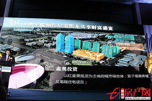 2014年4月8日下午4點,紅星美凱龍(滕州)全球家居生活廣場招商說明暨新聞發布會在滕州濱江國際大酒店隆重舉行。滕州市委常委宣傳部長劉光,滕州市政府副市長張憲依,滕州市龍泉街道黨委書記孫劍,山東省家具協會會長牛廣霞,山東鑫奧投資有限公司董事長李鑫、朱建民,紅星美凱龍東北華北大區總經理張宏杰、濟南區域總經理徐志敏、滕州商場總經理王東以及逾千名國內外知名家居廠商代表出席了本次活動,共同見證了這場山東家居業內極具意義的盛會。