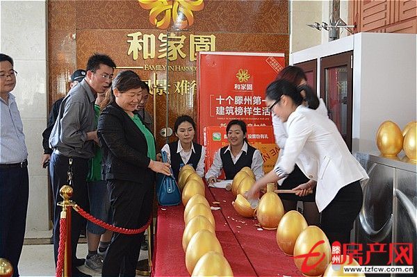 據介紹,為了讓市民過上一個不一樣的五一勞動節,也為了答謝一直以來關注和支持和家園項目的新老業主,和家園舉行了精彩紛呈的砸金蛋和送雞蛋活動?!白岆菔忻癯陨辖】惦u蛋,吃上有機雞蛋,是我們舉行本次活動的初衷,這正符合我們建造滕州最好的房子,讓滕州市民住上高質量、高品質房子,讓滕州市民享受到最好的服務的建設標準。在這中間穿插砸金蛋活動,其目的在于,在五一勞動節的假期當中,讓我們的準業主們過一個充實而又趣味重生的節假日,過一個難忘而有意義的勞動節?!焙图覉@營銷中心負責人張經理說道。在和家園營銷中心記者看到,前來參與砸金蛋的準業主們排起了長長的隊,憑和家園全城派發雞蛋票領取有機雞蛋的客戶們絡繹不絕。一個個金黃的金蛋,一斤斤紅色袋裝的雞蛋,構成了和家園營銷中心一道亮麗的風景。而客戶滿臉的笑容,更是使和家園營銷中心充滿了節日的氛圍。那些被掄錘砸破的金蛋在人們的歡呼聲中“開花”,象征著春暖花開,人們的生活像花兒一樣美。“和家園營銷中心舉行的這次活動真的很精彩,我是前期買完房子的業主,通過工作人員的介紹,我了解到金蛋里面有很多大獎,最高獎項是三年的物業費,其次是兩年一年不等,還有大米、防風傘和云稠絹扇等參與獎,大家都積極參與砸金蛋活動,并樂在其中。雖然我砸了個參與獎,得到了一袋大米和一斤雞蛋,但是我感覺到參與其中的樂趣,讓人很溫馨?!币呀浭呛图覉@準業主的客戶劉女士說道。