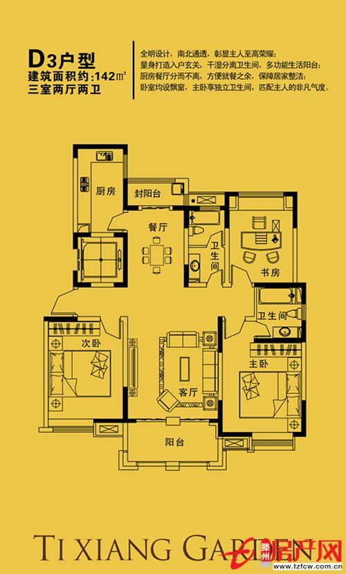中房·緹香郡項目面市以來,憑借其良好的建筑品質、優越的規劃設計,超高的性價比、完善的生活配套以及公園式的景觀,成為滕州東部一大品質樓盤。而即將開放的實景樣板房,將再一次禮贊城東。據悉此次即將開放的樣板房為D3和D4戶型,面積約為119㎡和142㎡,完美戶型讓空間容納更多的精彩,讓我們拭目以待。