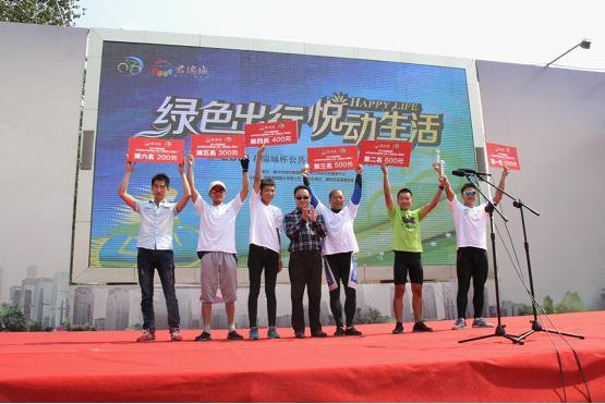 活動中,君瑞城還為眾車友準備了豐厚的現金大獎,在輕松活躍的氣氛中,活動直至中午12時才結束,現場共競爭角逐出公共自行車城市騎行達人賽男子組前六名,女子組前6名,廣場競技賽自行車慢騎前3名,單腳蹬自行車前3名。馮軍、康凱、褚洪尚、張鵬分別為獲獎選手頒獎,來自市區的白先生作為城市騎行賽的第一名獲得了1000元的現金大獎,他說“我覺得這次活動舉辦的非常有意義,秋天來了,大伙也該出來鍛煉鍛煉身體了,正好君瑞城為我們提供了這樣的機會,我和我的家人都非常支持并且樂于參加這樣的活動,低碳又環保,還呼吁大家注意保護大自然”。