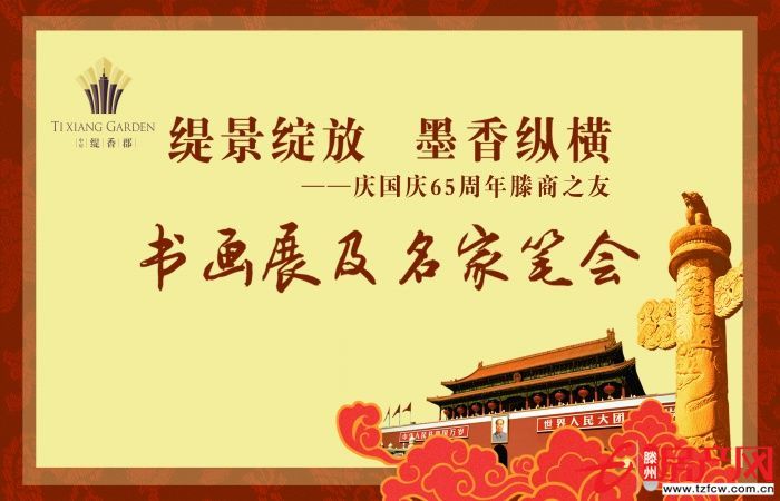 正值國慶65周年之際,為傳播中華傳統文化,弘揚書畫藝術,彰顯書畫家藝術光彩,迎國慶六十五周年滕州書畫名家筆會活動將于10月7日在中房·緹香郡營銷中心舉行,中房公司力邀我市八位著名書畫家現場題詩作畫,很多優秀作品展出。界時名家還可以根據您的要求,進行現場題字贈送,機會非常難得,快帶著親戚朋友一塊過來參與吧!