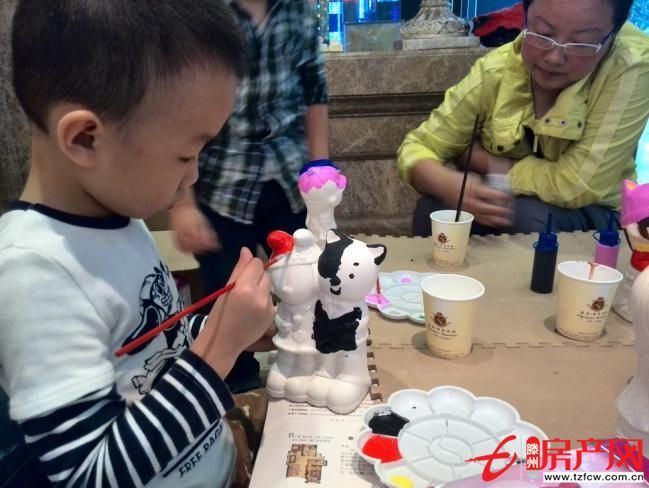 參加彩陶DIY活動的朋友們,正認真涂鴉著手中陶器。