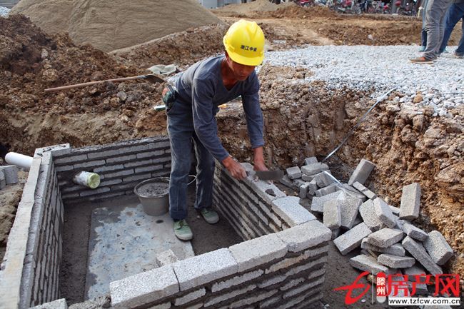 10月17日,筆者在涵翠苑A區看到,施工人員正在鋪設北門口花壇水景池管道。