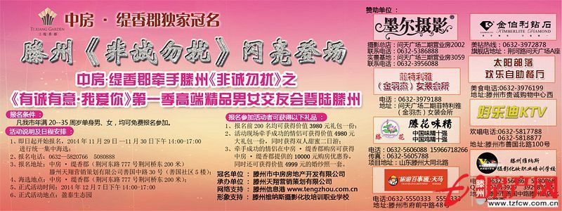 中房∙緹香郡牽手 滕州《非誠勿擾》之--《有誠有意 .我愛你》第一季高端精品交友會登錄滕州