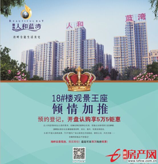 人和•藍灣是由滕州市政府直屬國有獨資企業——滕建投資集團在滕州生態環境最好的區域,精心打造的1號灣畔名宅,包含高層、小高層和沿街底商、社區幼兒園、豪華會所等。目前項目從今年10月份開始,陸續實現交房,同時項目18#樓觀景王座也開始預約登記,預計12月開盤,目前預約可享受5000抵6萬的優惠活動,其余房源最高可享受4萬元的購房鉅惠,有購房需求的客戶不妨去人和藍灣了解一下,相信人和藍灣會重新定義您心中的好房子。