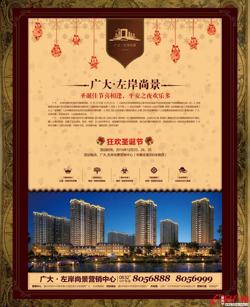 廣大·左岸尚景狂歡圣誕節濃情回饋。12月23日至12月25日,凡前往左岸尚景營銷中心參與狂歡圣誕節活動的新老客戶均獲贈精美禮品一份。左岸精英會老客戶在活動期間立享購房充值存折(送贈存折充值金額1萬到4萬不等),老會員每帶一個新會員入會還可獲贈3688元的增值紅包(可抵房款使用)。以“老帶新”入左岸精英會的會員在活動期間同享優惠!同時,我們為您準備了精致的糕點、水果、飲料供您享用和個人祝福懸掛圣誕樹的互動,敬請光臨!左岸尚景,在圣誕佳節,以品質感動生活!
