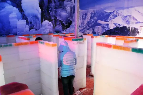 冰雪迷宮里,兩個小朋友在里面穿梭,在柳暗花明中體驗一個新奇有趣的童年。