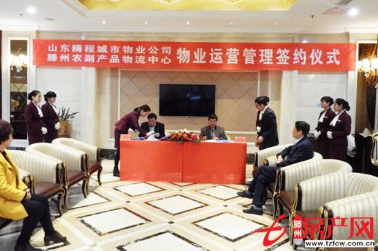 2015年03月21日,滕州農副產品物流中心物業運營管理簽約儀式在中房•緹香郡營銷中心舉行,標志著騰程物業公司將邁向新的發展方向,為日后物業服務項目的結構調整和發展,拓展更多的物業服務市場打下了堅實的基礎。
