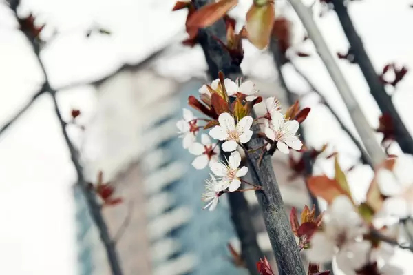 最早栽好的樹現在已經盛開了美麗的白花,美景初現。