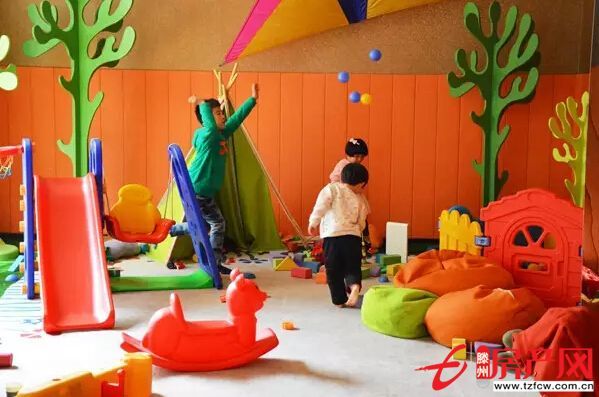 幾位小朋友在兒童娛樂區玩的不亦樂乎~