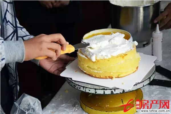 來自滕州梁師傅的糕點師傅現場為每一位業主制作美味可口的蛋糕。
