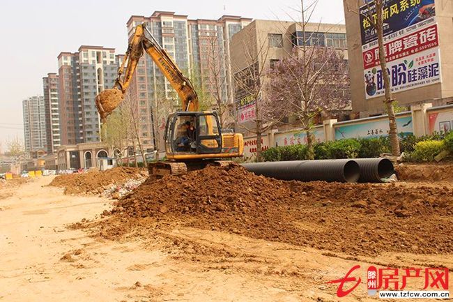 從緹香郡的營銷中心走出來,可以看到邾城路南段施工正酣,挖掘機正在緊張作業中。據悉,該道路給排水、電、暖等管道預埋已施工完畢,下一步將轉入路面施工。
