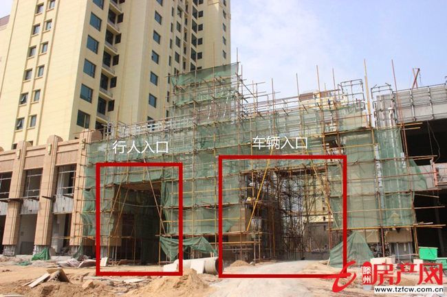在中房·緹香郡項目的大門處,筆者看到,大門正在進行大理石干掛施工,從施工現場看,該大門分為行人入口和車輛入口,實現了真正的人車分流。在項目入口處,噴泉施工也正在進行,可以想象歸家時分,看見淙淙的噴泉,在片片光影中,如夢如幻,別有一番滋味。
