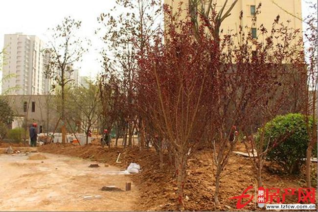 在小區內部,目前該項目內的綠化施工已接近尾聲,園內已呈現郁郁蔥蔥的景象,一片春之生機。據施工人員介紹,緹香郡內引進了香樟、桂花、銀杏等許多名貴樹種,而且在當前綠化施工的黃金時節,這些苗木都是全冠栽植,筆者粗略的量了一下樹的胸徑,一棵桂花樹達到了30公分,還有幾棵銀杏樹甚至達到了40公分,據綠化工人介紹,這幾棵銀杏的樹齡估計有30多年了。這些栽植完畢的大型苗木,正在打著“吊瓶”,接受大樹輸液專用袋的營養。