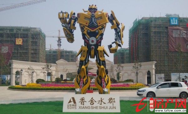 這不是《變形金剛》里的大黃蜂嘛?!這實在是比超人神馬的酷多啦!太有科幻片的感覺了!“一進香舍水郡大門的劉先生,光是看見門口的大黃蜂,就激動地不能自已了。