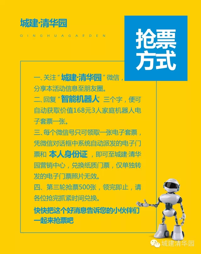 5月23日(本周六),最炫酷、最全、最好玩的智能機器人,就來城建·清華園啦!還沒有搶到門票或兌換紙質門票的小伙伴抓緊嘍!