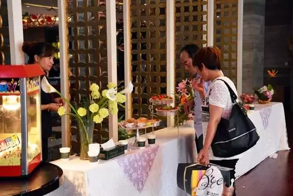 除了蛋糕和餅干之外,涵翠苑還設立了冷餐區,各種水果飲料一應俱全。爆米花機里的玉米粒兒歡快的跳著舞,它們仿佛也被這種熱烈的氣氛感染,為在場的所有人送去美好的祝愿。