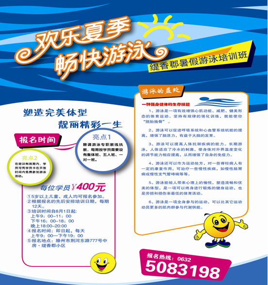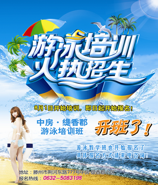 中房•郡香郡泳池游泳培訓班正式開班了。借助緹香郡本身擁有的滕州首家700平米戶外泳池,邀請了專業級教練為指導員,為廣大學員提供細心周到服務。