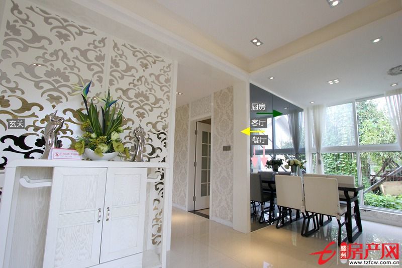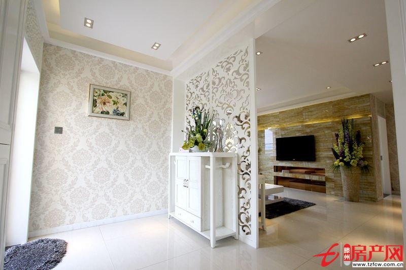 傳統的玄關邂逅現代化的屏風裝飾,右手邊的一面墻整合成一個巨大的組合柜,所有雜物隱形與此。