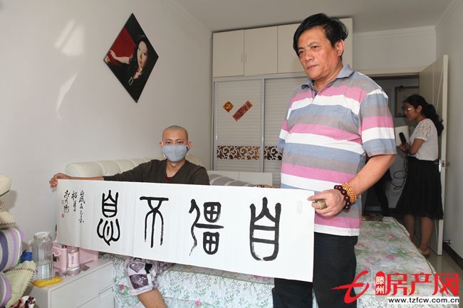 在蔣曉鵬家中,筆者還看到,有不少社會上的愛心人士前來捐善款、獻愛心,家住該小區B區的書法家王為老師更是現場潑墨,將篆書“自強不息”贈與蔣曉鵬,并鼓勵他要以頑強的求生信念戰勝病魔,濃濃的溫情、滿滿的愛意充滿了蔣曉鵬家中的每一個角落。
