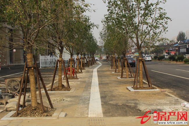 為解決因機動車輛的行駛和停放造成的路面破損問題,新華東路道路整修中將停車位和人行道均做成瀝青路面。同時,為保證道路盲道設施的建設,該項目項目部人員進行了深入研究,并針對在瀝青類人行道路面鋪設盲道進行了多種材料的試驗,經過反復試驗,熱熔盲道其規格尺寸、外觀均能夠滿足設計和使用功能的要求。