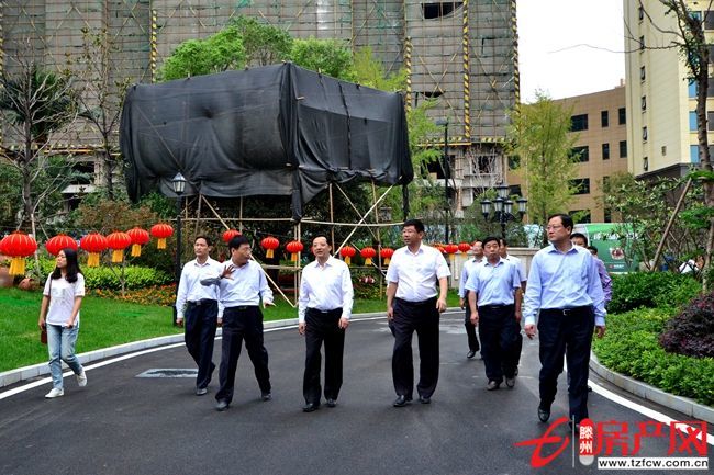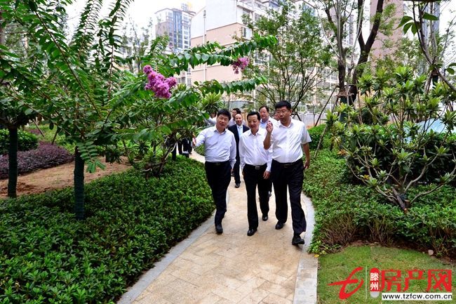 同時,董沂峰一行還到中房·緹香郡小區進行了現場視察,對小區的環境綠化、智慧社區系統、垃圾分類、樣板房建設等工作給予充分肯定,并提出了加快建設新型社區、惠及群眾生活的要求。