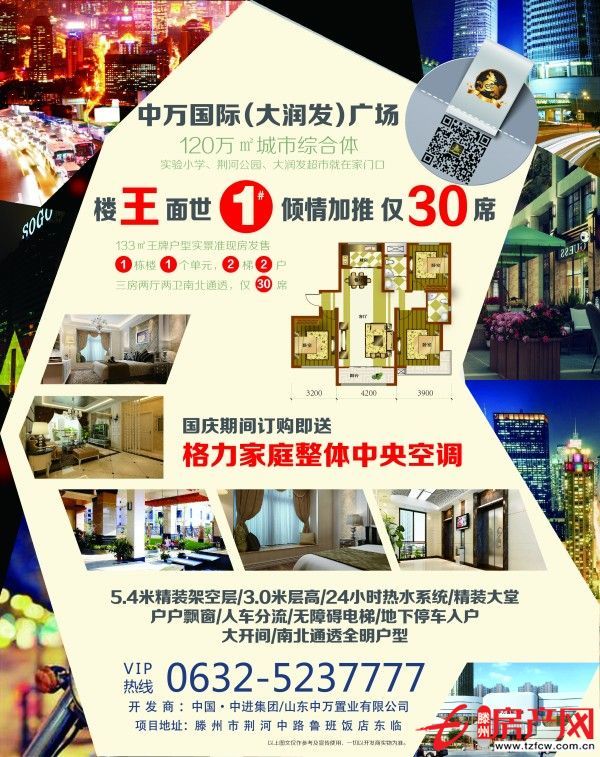 中萬國際(大潤發)廣場樓王面世,1號樓傾情加推,國慶期間訂購即送格力家庭整體中央空調!