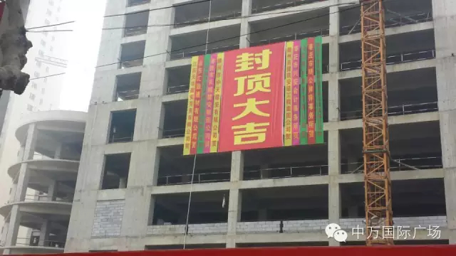 中萬國際廣場商業樓作為項目的龍頭,位于項目頭一排,在工程進度上一馬當先,在品質上眼見為實。從今年春季開工起,建設進入沖刺期,歷時半年,完美封頂!項目不僅與國家優秀施工單位強強聯合,用材用料也均選優質,確保質量與進度。半年來,建設者揮汗如雨,頂著高溫炎熱天氣,加班加點,風雨不息,節假無休,方得碩果。隨著10月18日混凝土料斗在樓頂緩緩倒下最后一斗混凝土,工人上前用搗震機械進行砼實壓平之后,現場一片歡騰。