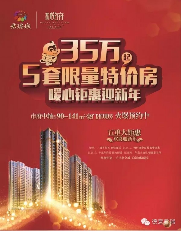 君瑞悅府12月暖心鉅惠!35萬起,五套限量特價房讓你這個冬天不再寒冷,溫暖迎新年!同時還有五重鉅惠,驚喜來襲!