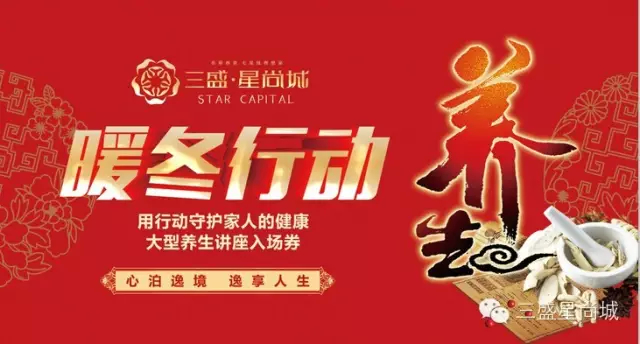 12月5日-12月6日,三盛·星尚城盛大推出“暖冬行動——用行動守護家人的健康”養生講座,聘請專業養生專家講解食療養生、中醫養生方法為您答疑解惑,歡迎您的免費參與。