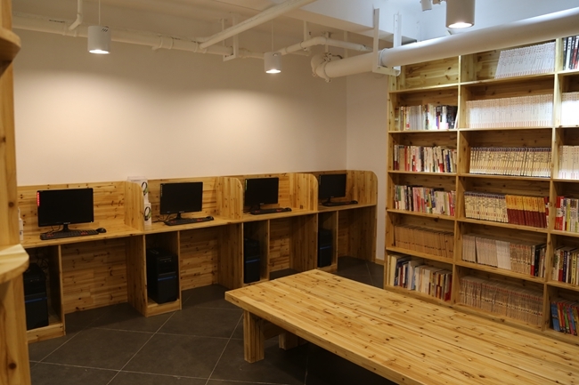 居民在家門口就能讀書閱覽,沐浴書香,這是怎樣的一種愜意生活狀態,不妨跟著筆者來了解一下是啥模樣。這間名為“1952書吧”的圖書室座落在中房·緹香郡小區4號樓的社區用房內,一進小區大門便能看到。一走進書吧,就看到用漢字做成的背景墻,便能感受到陣陣文化氣息撲面而來。1952書吧面積有600多平方米,裝修簡潔大方,原木書架,健康時尚;環境硬件是一流的,閱覽桌椅、電腦、空調、監控設備一應俱全;圖書的種類齊全,包括文學藝術、人文科學、醫藥健康、少兒讀物、家庭生活 、科普教育、低幼啟蒙等共60余種,10000多冊,還有部分音像制品,幾乎讀者日??赡茏x到的圖書都能找到,也不乏新書、暢銷書。如此高規格社區圖書室,是我市目前也應該是最“高大上”的了。