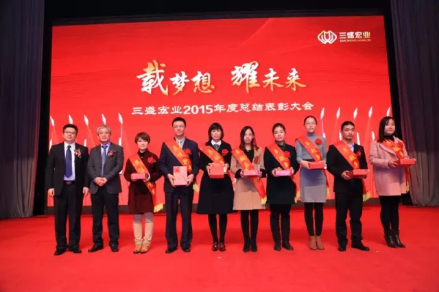 隨后,大會進行了頒獎儀式,嘉賓和集團領導為2015年涌現出來的先進個人和團體進行頒獎。獲獎代表們紛紛發表了獲獎感言。最后,大會主持人宣布三盛宏業2015年度總結表彰大會圓滿結束。