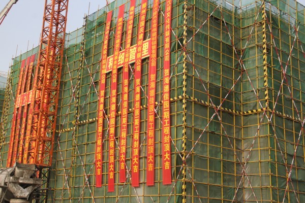 保利地產公司總經理孫貽祝,副總經理趙峰,各部門經理,施工單位負責人及監理單位負責人等五十余人共同見證了一期工程21#、22#、23#樓主體封頂。保利·海德佳園一期工程從2015年11月3日正式動工,到今日僅2個多月的時間就完成主體封頂。全體施工人員在這2個多月里放棄了節假日的休息時間,加班加點保質保量地趕進度,創造了滕州房地產市場的一段佳話。許多路過的市民也都駐足觀看,并對央企保利的施工進度拍手稱贊。