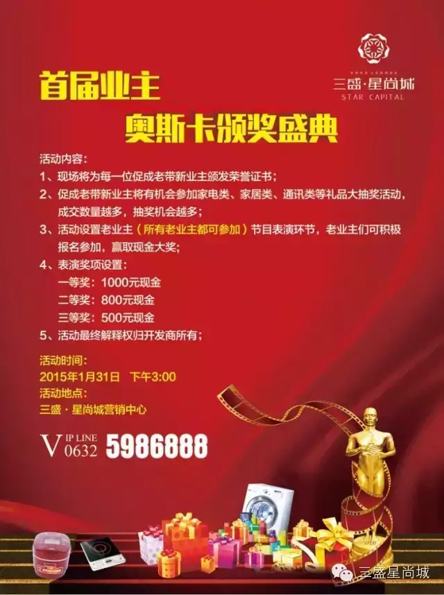 1月31日(周日)下午三點,三盛星尚城年度終極盛會——《2015年度老業主奧斯卡頒獎盛典》,即將盛大起航,與你一起,回首2015,憧憬更好明天。