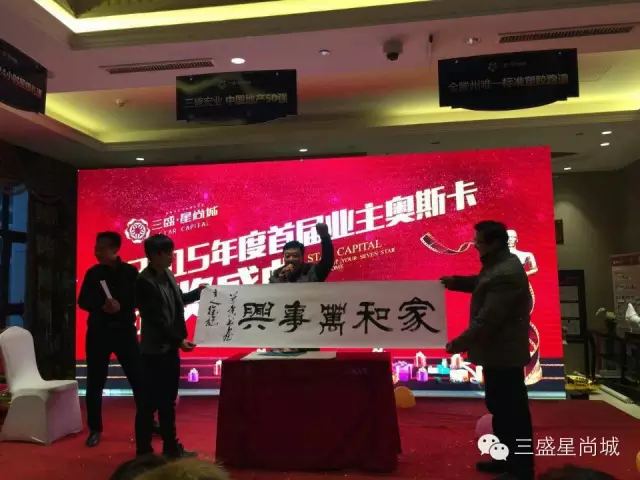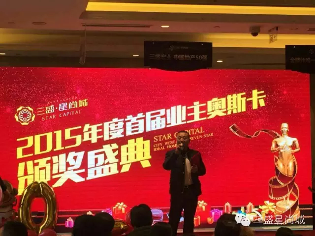 1月31日下午3點,三盛星尚城2015年度首屆業主奧斯卡頒獎盛典在三盛星尚城營銷中心溫情上演。為答謝廣大老業主的關注和支持,三盛星尚城項目公司精心籌備了此次活動,現場為業主朋友們準備了精彩的表演、精美的點心和各類抽獎活動以及豐厚獎品;業主們也積極報名參加活動,表演自己拿手的節目。