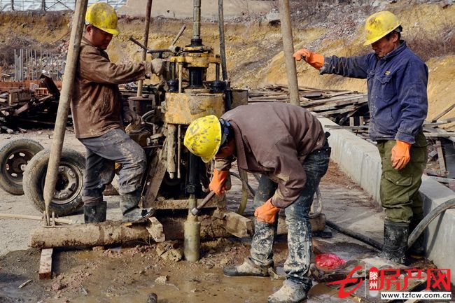 在億豐·和家園二期項目施工現場,負責施工的人員一部分正在忙著拆除原來廢棄的鋼管架和基礎模板,另一部分人正在安裝水泵進行排水作業,以便于基礎處理和地質勘探。據現場的勘探工作負責人介紹,他們從大年初九開始工作,再有一周時間就可以完成整個項目基礎的勘探工作,確保不影響施工進度。