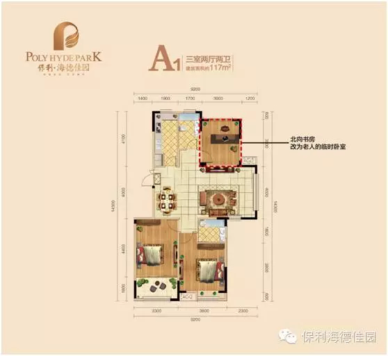 北向臥室作為第一個孩子的臥室,書房可改造為老人臨時臥室;