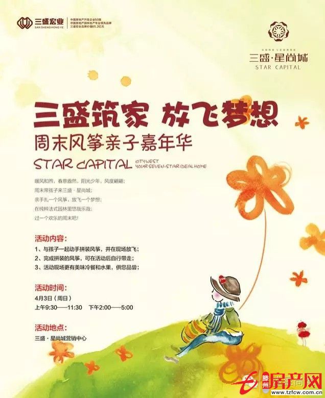 如果你還童心未泯,想要在天空中讓夢想自由翱翔;或者你已為人父母,可以在周末的時候,陪著家人,一起享受輕松時光。這周末帶小盆友來三盛·星尚城吧,讓孩子親手制作一個風箏,跟他一起,在市政府旁放飛夢想!