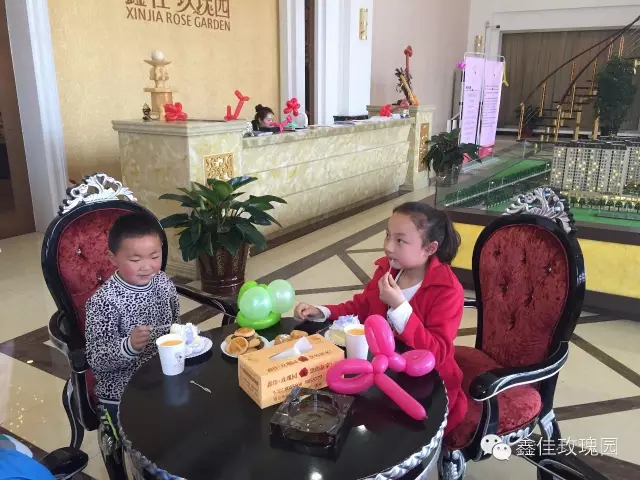 原來為了答謝老業主的支持,迎接新業主的到來。玫瑰園售樓處盛情準備了美味的糕點和飲品,與大家一同分享。同時現場更是有調皮的小丑制作花式氣球,送給到場的“小業主們”。“小業主們”一邊享用著美味的糕點,一邊守護著自己的“寶貝”。現場歡聲笑語,熱鬧非凡。