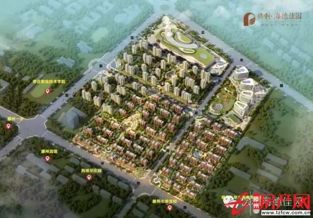 南臨市委黨校、滕州賓館,西近市委市政府,東鄰市氣象局;北靠植物園、北辛公園生態區。