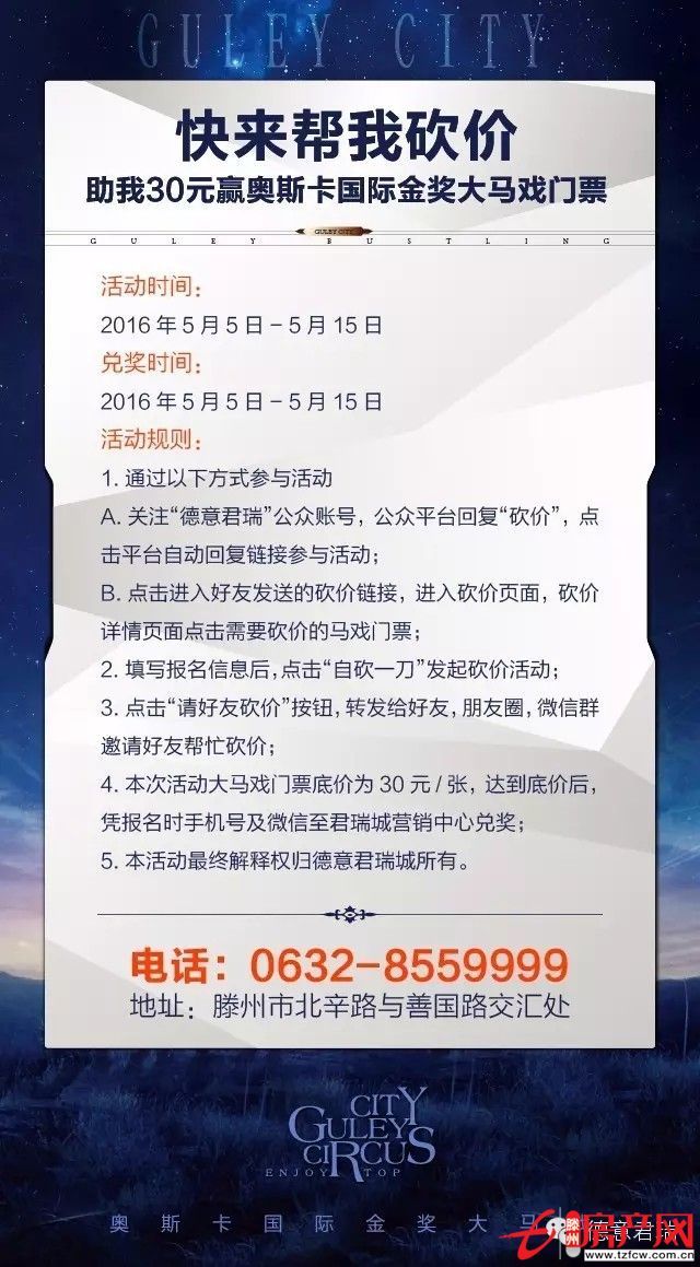 那件衣服真好看,可是太貴了!要砍價!豬肉又漲價了!我得和老板砍砍價!買車買房更不用說,一定要砍價拿優惠!現在,連大馬戲門票也能砍價啦! 奧斯卡國際大馬戲即將引爆滕州!10個國家的頂級馬戲團隊,100多名雜技藝術家同臺參演!最驚險刺激的時刻你怎么忍心錯過?