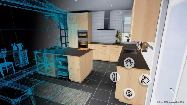 用戶可以在這個虛擬廚房四處走動,探索可交互的部分,拿起里面的任何物品,還可以拉開抽屜,改變櫥柜的顏色等。根據成年人或兒童的不同身高提供不同的視角進行體驗。此外還有一個一個“瞬間移動”的功能。