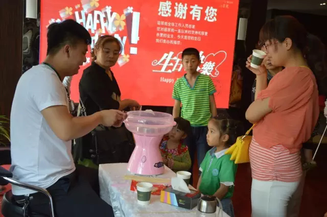 可是只有這些怎么足夠,下面就是這次生日會我們的小業主最愛的地方啦!沒錯!就是棉花糖!整場生日會,這個大哥哥恐怕是最受小朋友們歡迎的人了吧!不信你看......