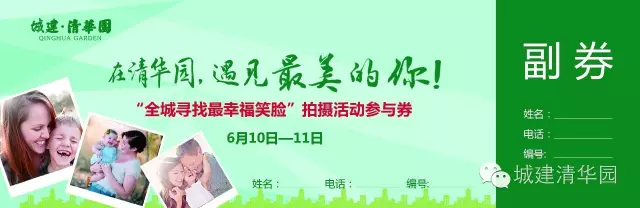 “城建·清華園全城尋找最幸福笑臉—免費主題拍攝”活動微信已發送第5天,如果您已按照微信要求,轉發完今天的微信。那么恭喜您!您可以到清華園售樓處換取活動參與券啦!