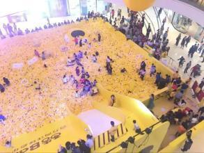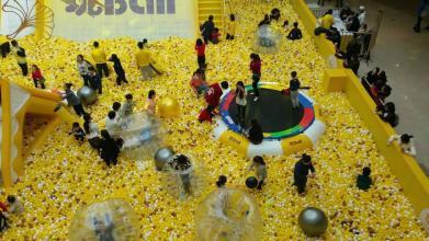 100萬個海洋球平鋪開,面積約占地10畝,可鋪滿一個奧體足球場;100萬個海洋球連起來長度約80000米,可繞滕州古城8圈;100萬海洋球可裝滿10輛公交車;有沒有一種不明覺厲的感腳!