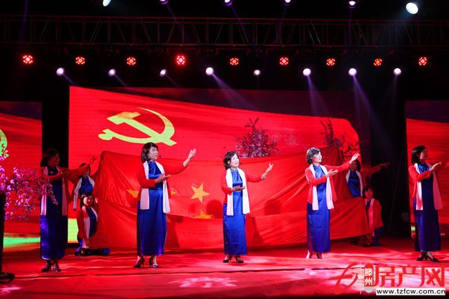 晚上7時許,夜幕徐徐降臨,現場早已座無虛席,7時30分,晚會在激昂澎湃的開場舞《黨旗飄飄》中正式上演。晚會演出形式多種多樣,其中有詩朗誦《贊歌》、《山河祭》、《時代頌歌》,歌舞表演《繡紅旗》、《山丹丹開花紅艷艷》、《沒有共產黨就沒有新中國》、《我們的生活充滿陽光》,群舞表演《夜渡》、《希望的田野》,歌曲組合《心中的歌兒獻給黨》、《春天的故事》,大合唱《共筑中國夢》,以及由涵翠苑物業保安部帶來的形體拳表演。演員們用激揚的歌聲、優美的舞姿演繹出一幅幅、一幕幕對美好生活的贊歌,從舊社會嘉興南湖游船上射出的一縷曙光,到新中國陽光普照下的飛躍,晚會展現出了在歷史的巨輪下中國共產黨發展的光輝歷程。