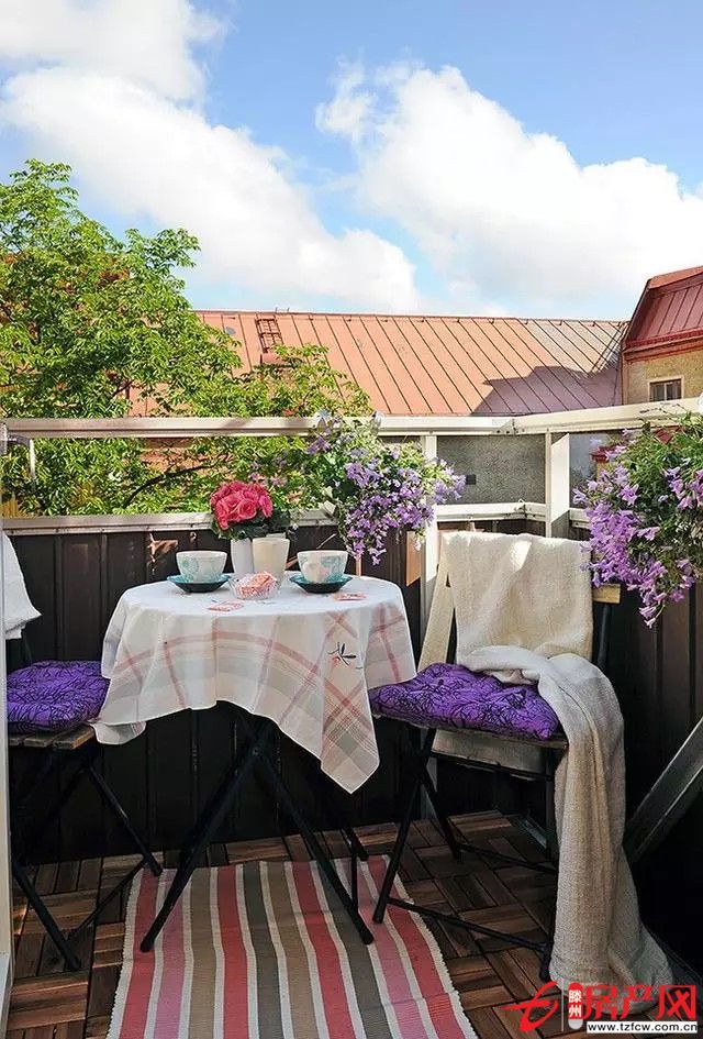 裝飾搭配建議:選擇一幅厚厚的大地毯直接鋪在露臺上,站著坐著躺著都可以,人數再多也能容納下,可以搭配些小墊子或矮桌,用來放食物和飲料。