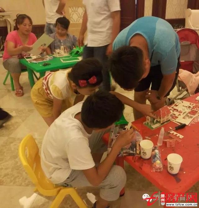 高聳的法式塔,古典的中式房,美麗的農家小院組合、拼裝,最后再加上頗有新穎的彩色涂鴉,看著自己親手做的城堡。在溫度適宜的空調間里,開開心心滿足的不得了。小朋友們認真尋找拼接方式的模樣可愛極了,被抱著的小寶貝可想玩了呢,炎熱的周末頓時增添了許多趣味!