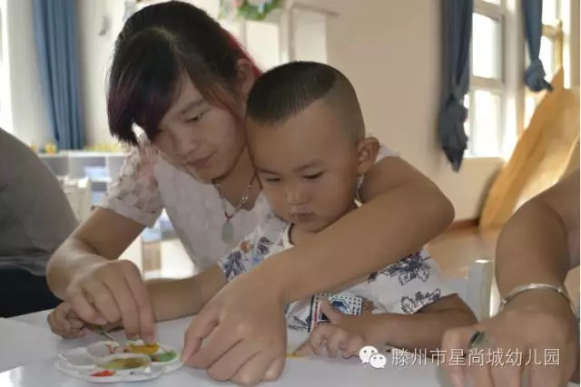 今天的課程是《手指印畫》,在老師的引導下,第一次上課的小朋友們,竟然都非常認真、投入的參與課堂,通過自己的實踐完成了美麗的作品??蓯鄣睦罾显跒榇蠹易鍪痉叮蛳聛砩险n是幼兒園的服務理念,這樣老師的目光和小朋友們能夠平視,老師和孩子之間的關系是平等的、相互尊重的。